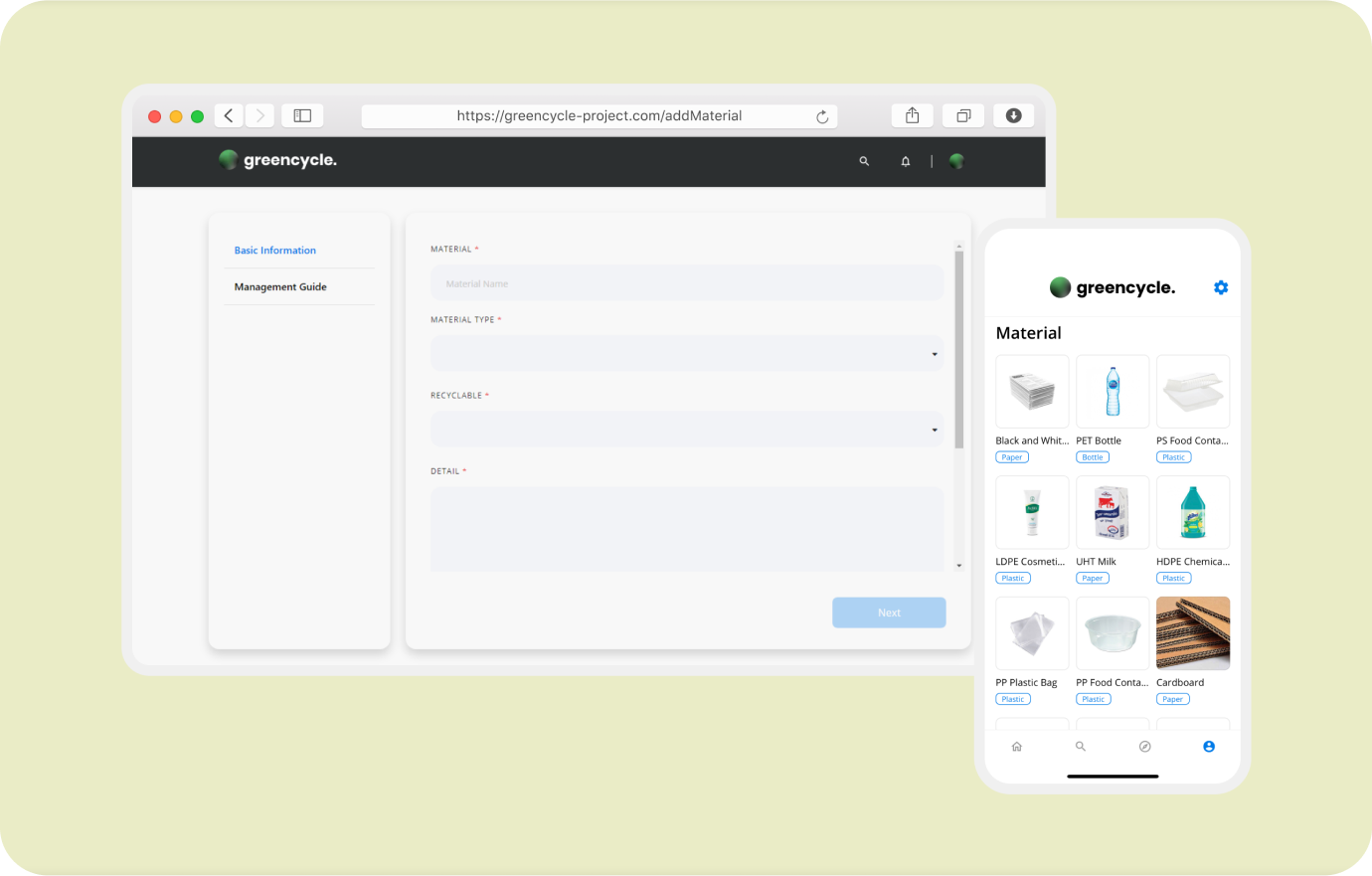 Green Cycle empowers individuals and communities to manage recyclable waste effectively. This platform combines a website and mobile application to connect people and resources.